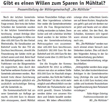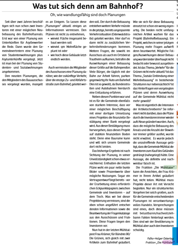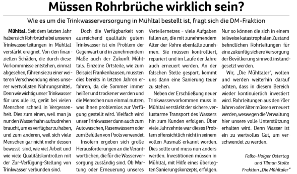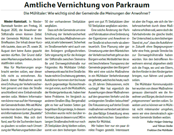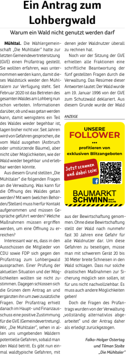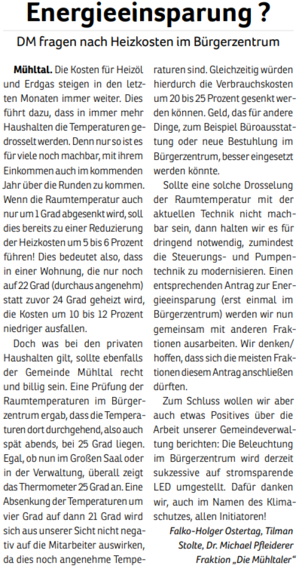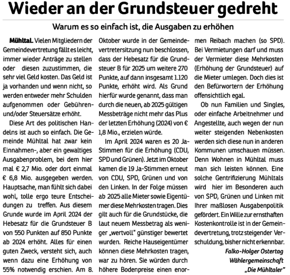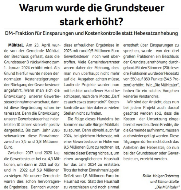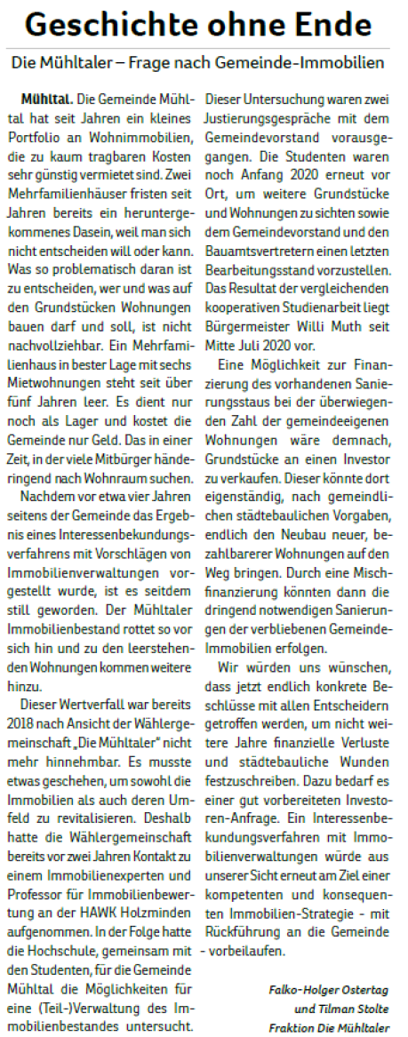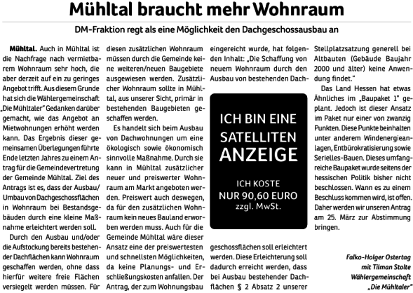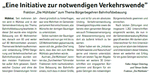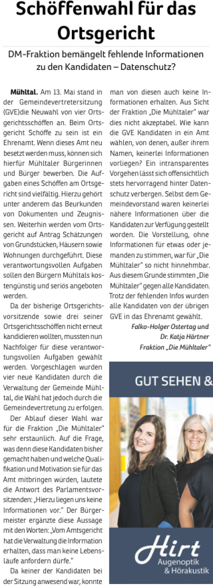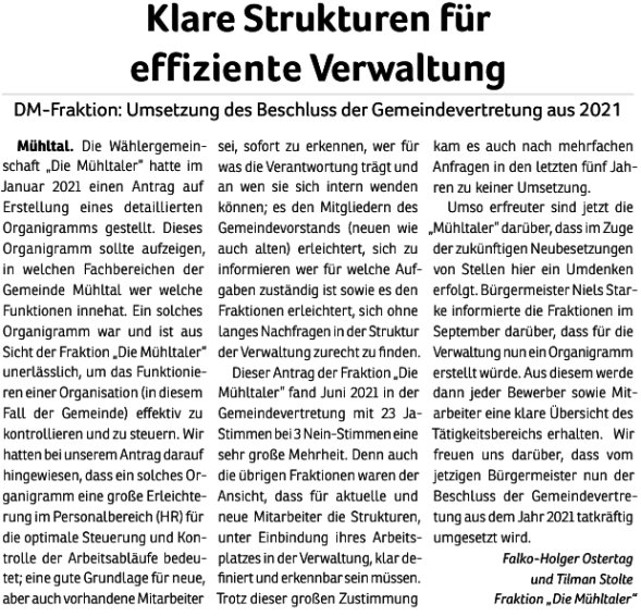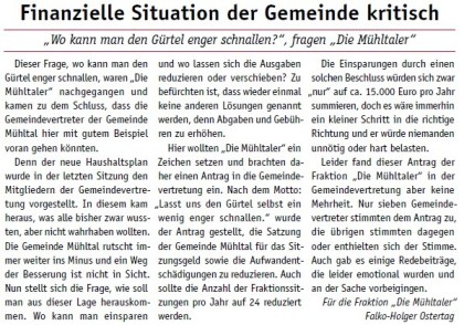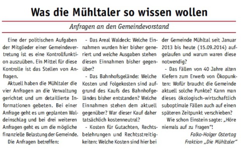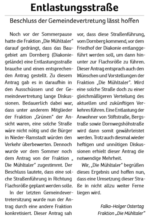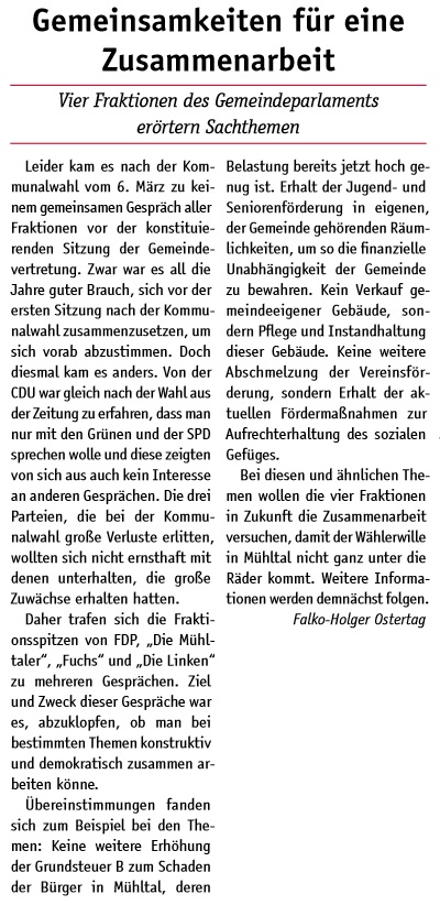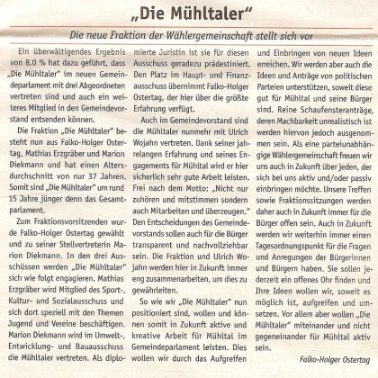 Die Mühltaler – Unsere Arbeit in der Gemeindevertretung