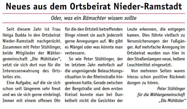 Unser Mitglieder im Ortsbeirat Nieder-Ramstadt: