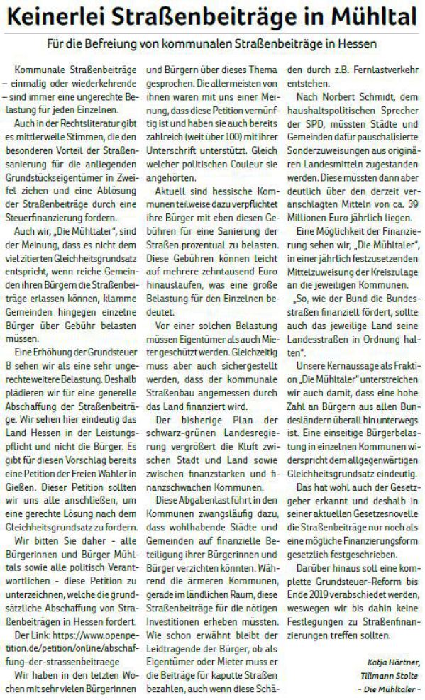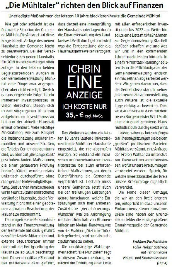 Die Mühltaler – Unsere Arbeit in der Gemeindevertretung