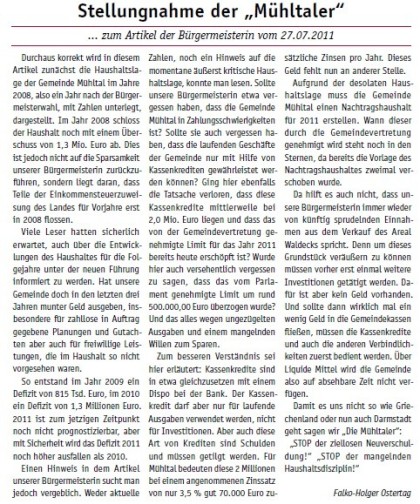 - Stopp der stark gestiegenen Verschuldung (von 9 Mio. auf 12 Mio. auf 18 Mio. hin zu 24 Mio. innerhalb weniger Jahre).