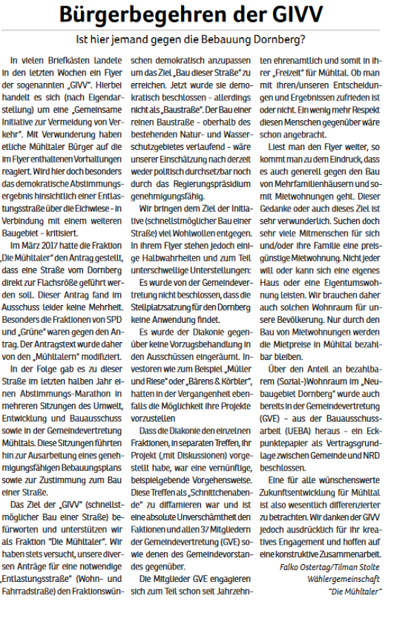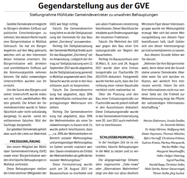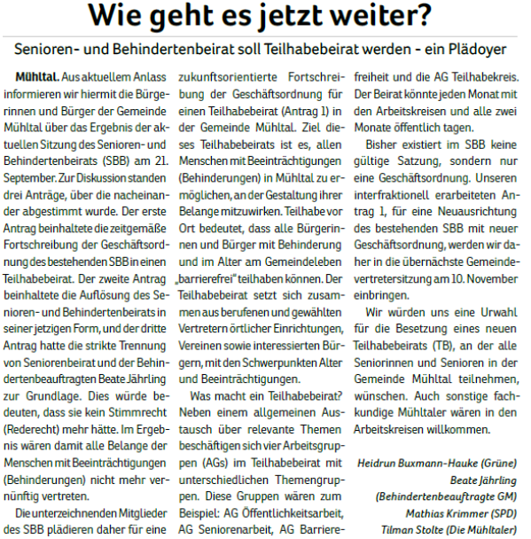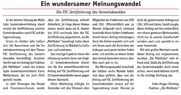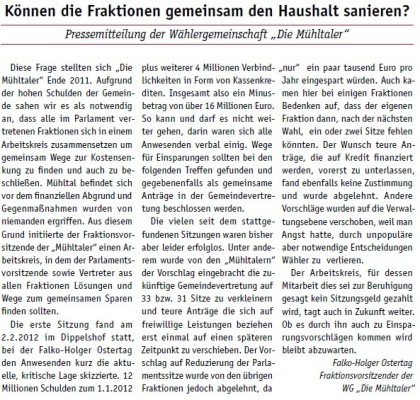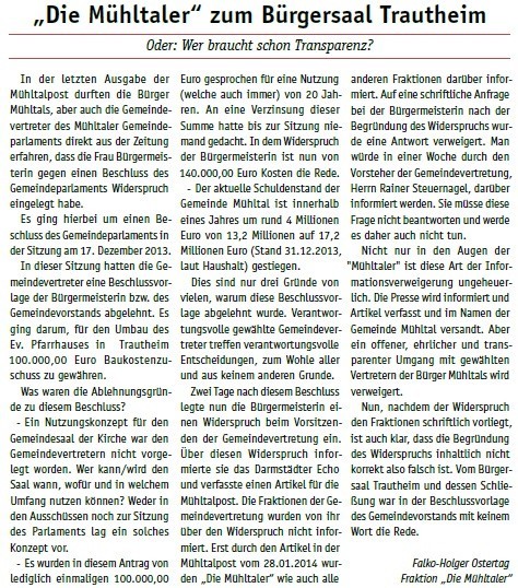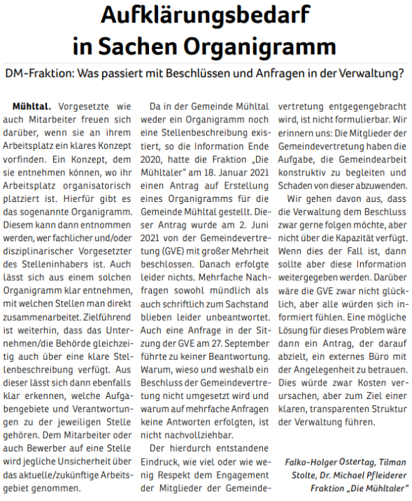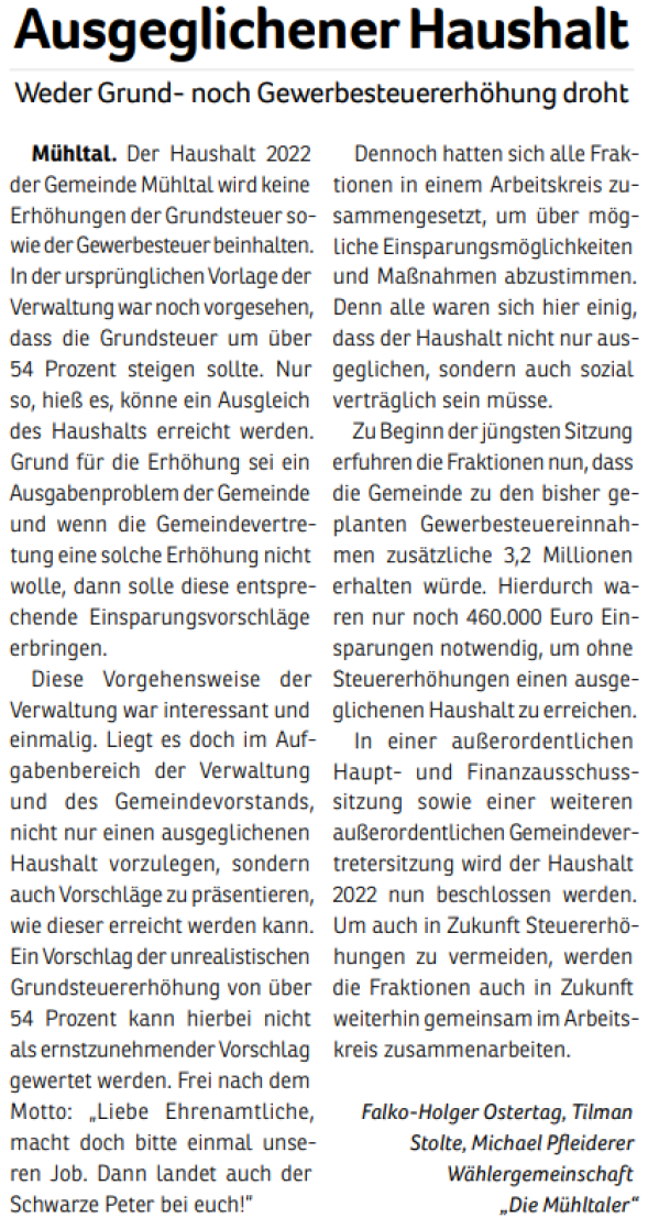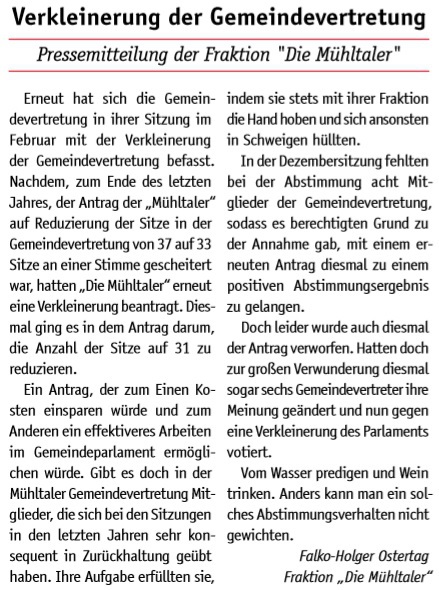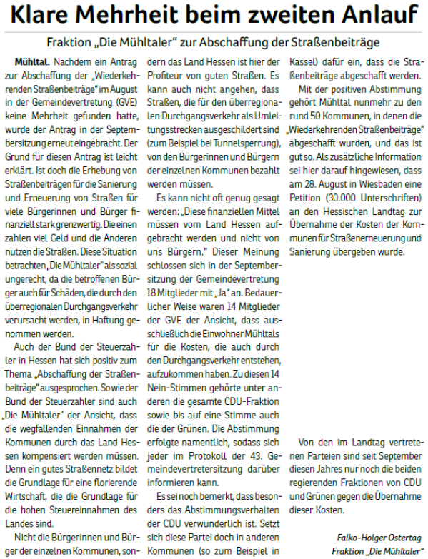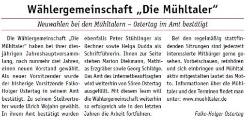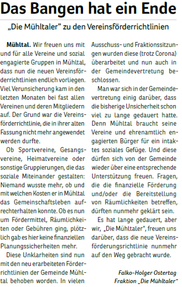 Die Mühltaler – Unsere Arbeit in der Gemeindevertretung