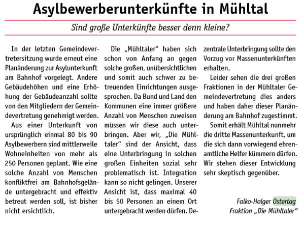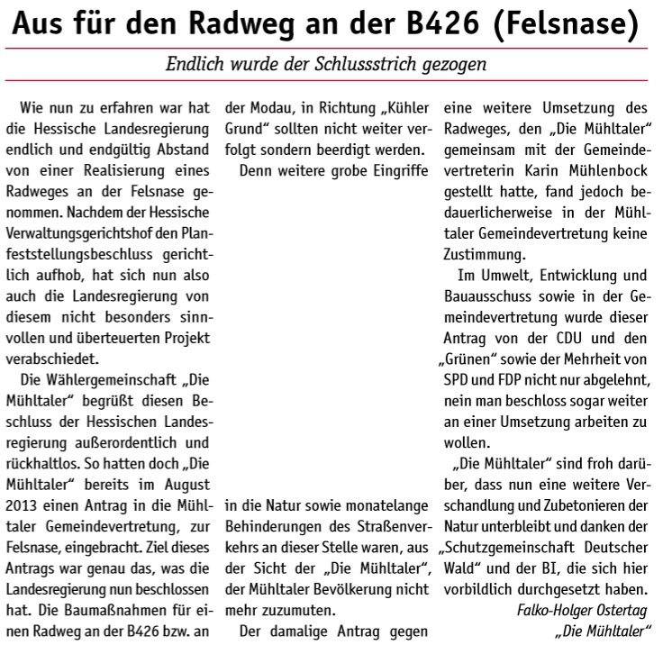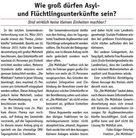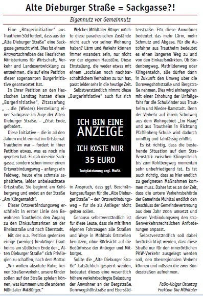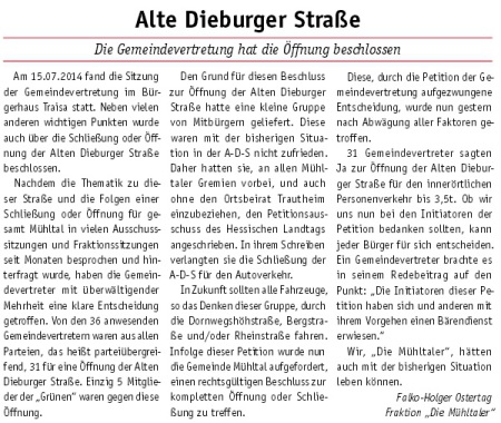 Nicht nur ein schönes Ortsbild und die Sicherheit im Verkehr, vor allem Umweltschutz durch Abfallvermeidung waren der Grund für den Antrag. Mit Ausnahme der Fraktion „Die Mühltaler“ haben alle Gemeindevertreter gegen die „neue Bescheidenheit“ im Wahlkampf gestimmt.