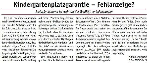 - Für eine langfristige und zuverlässige Kinderbetreuung. Wir sehen hier den Schwerpunkt der Betreuung bei den Gemeindekindergärten sowie der Kitas der Ev. Kirche.