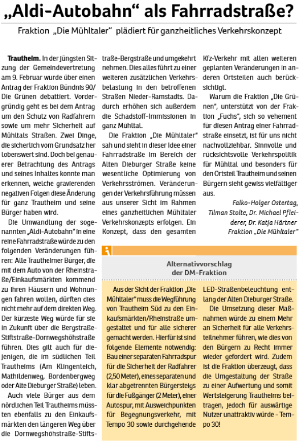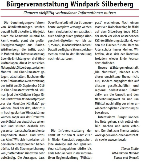 - Stärkung und Entwicklung des Wirtschaftsstandorts Mühltal. Arbeitsplätze und Gewerbesteuer sind wichtig für Mühltal.