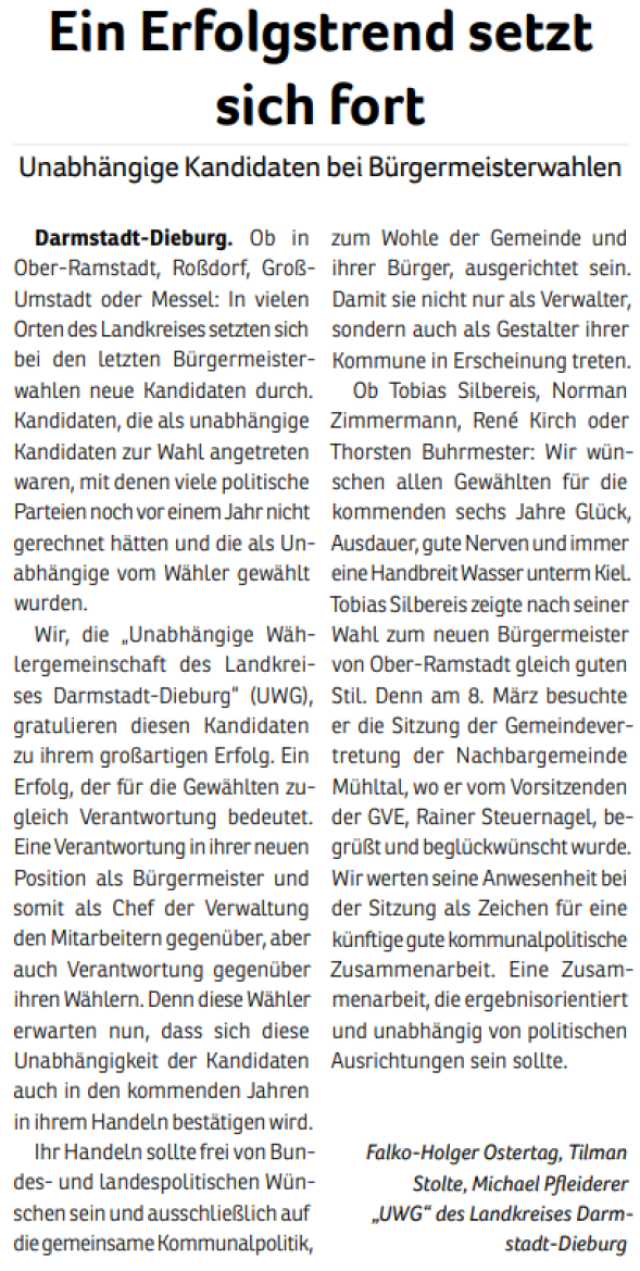 Unser Mitglieder im Ortsbeirat Nieder-Ramstadt: